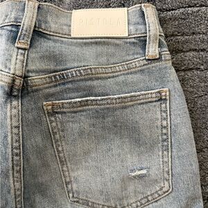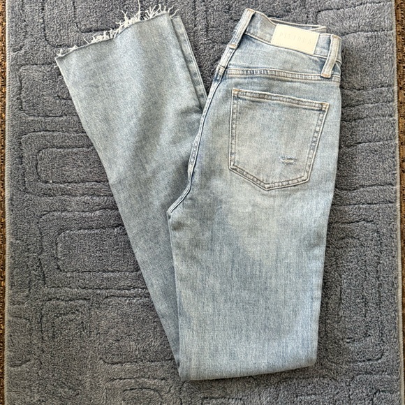 Pistola Light Wash Raw Hem Straight Flare Jeans Distressed Denim Sz 25