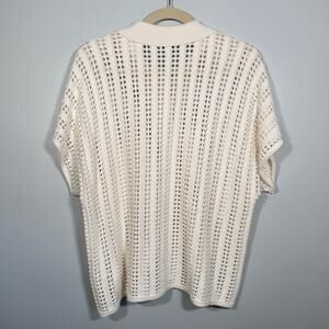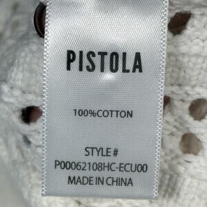 Pistola Lola Open-Knit Button-Front Crochet Cardigan Sweater Ecru Cream L