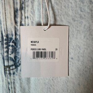 New with tags! This Pistola McKayla Low Slung Cargo Skirt in the "Parasol" wash is the ultimate in effortless cool-girl style. Crafted from 100% cotton, this skirt features a high rise, cargo side pockets, back patch pockets, front slit, and a raw hem for added edge. The light acid-washed denim gives a vintage, worn-in vibe that's perfect for casual days, streetwear styling, or festival looks.