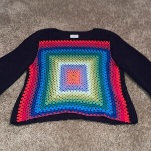 Vibrant crochet design. Crew neck style. Perfect for layering.