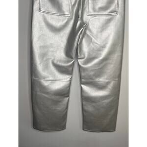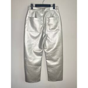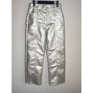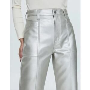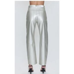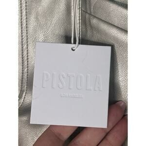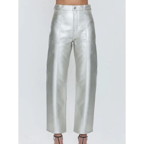 Pistola NWT Taylor High Rise Barrel Leg Party Faux Leather Pants Metallic Silver