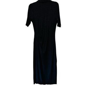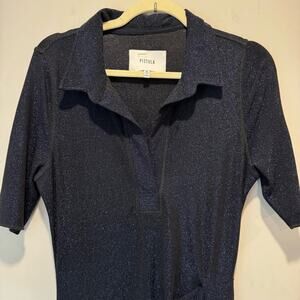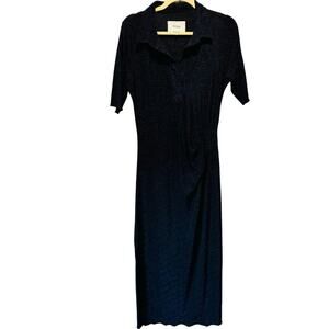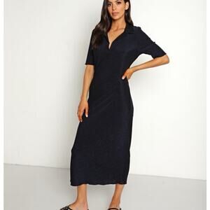 Pistola Navy Shimmer Stretch Front Draped Short Sleeve T-shirt V-neck Midi Dress