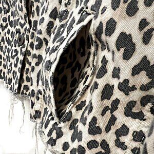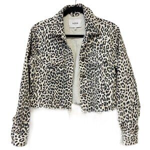 Pistola Naya Animal Print Cropped Jacket Leopard Raw Hem Oversized Classic Denim