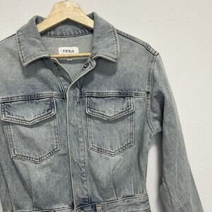 Pistola Nina Denim Mini Dress Raw Hem Snaps Acid Wash Size XS