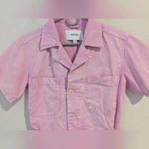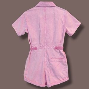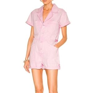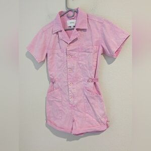 Pistola Pink Cotton Short Sleeve V-Neck Button-Up Parker Denim Romper.