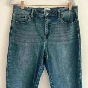 High-rise, belt loops, light fading, soft stretch denim Zip-fly with button closure