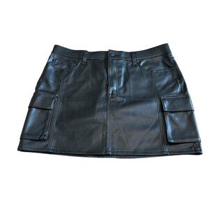 Pistola Rhea Black Faux Vegan Leather Mini Skirt Cargo Pockets Size 31 Women's