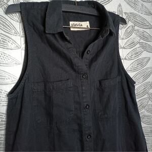 Pistola Sleeveless Tunic Top Button Down Split Sides Black Neutral