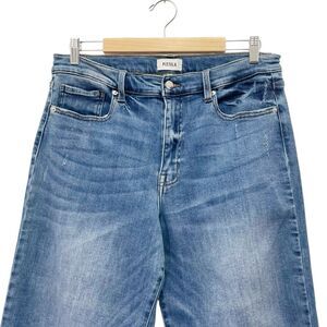 Pistola Super High Rise Straight Cropped Jeans Medium Wash Raw Hem Size 32 | 14