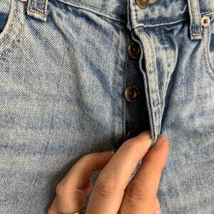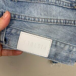 Pistola What's Your Sign Zodiac Astrology High Rise Jeans Size 28. Distressed knees and raw hem. Light wash, straight leg. In great condition - one minor spot on back right leg. See pictures for details.