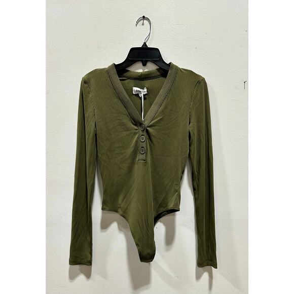 Pistola Women Olive Ribbed Button-Up Bodysuit