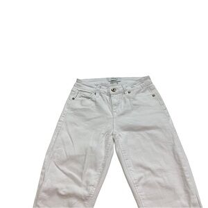 Pistola Denim Jeans Women’s Optic White Wash Stretch Denim Mid-Rise (8”) Straight Jeans Sz 25 with an Inseam of 27”. These jeans are preowned and in very good condition.