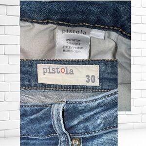 Pistola Women’s 30 Blue Tapered Destroyed Mid Rise Zipper On Leg Opening Denim