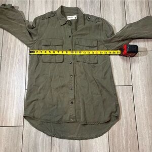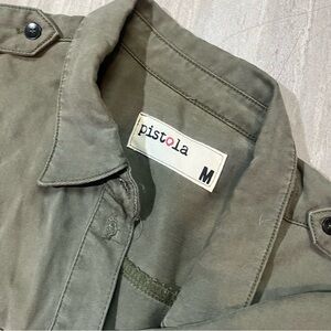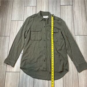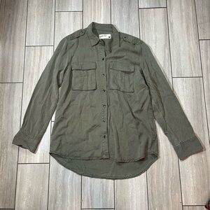 Pistola Womens Army Green Button Down Tencel Long Sleeve Blouse Size Medium