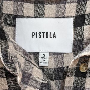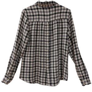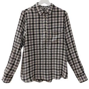 Pistola Women's Cream and Black Plaid Long Sleeve Button Down Shirt size S