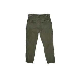 Straight leg, utility, capri pants. Color is Seaisle, similar to drab olive or army green. 2 front patch pockets and 2 back flap pockets.