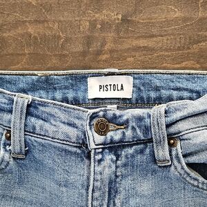 Discover the perfect blend of style and comfort with these distressed Pistola's blue jeans.