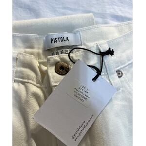 Related search terms: Pistola jeans, white denim, high rise, girlfriend fit, distressed jeans, new with tags, off-white denim, Pistola Presley, women’s denim, vintage-inspired look.