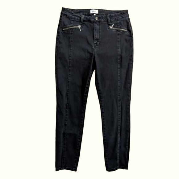 Pistola Women's Rustic Black Zip Pocket Pleated High Rise Skinny Jeans Size 31