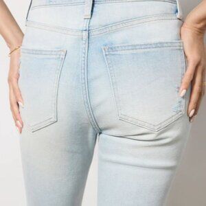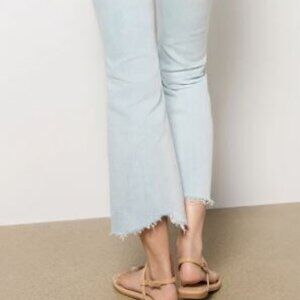 Designed with a shorter rise and inseam for petite frames, the Lennon petite bootcut jean by Pistola is crafted in soft stretch denim and features a high-rise fit, light blue wash, and raw hems cropped at the ankle.