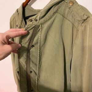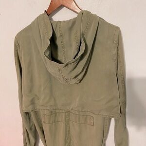 Pistola utility green long zip up jacket with hood and matching belt. Size M. Soft material. In great condition!
