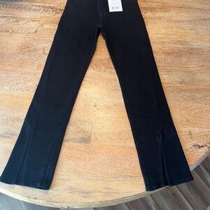 Pistola jeans, size 28, slim fit with slightly flared leg. The cool part, in my opinion, is the slit at the cuff on each leg.