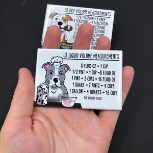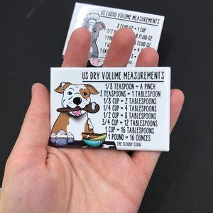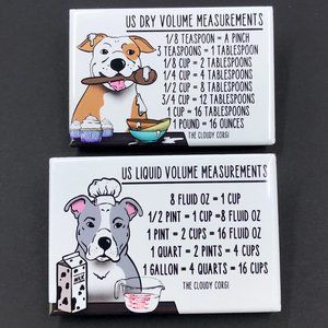 This handmade magnet set features hand illustrated dogs with handy conversion charts you can reference while cooking or baking!