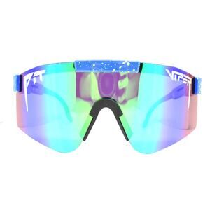PRODUCT TITLE: Up for sale is a pair of Pit Viper Solid Blue & Yellow Dots Shield Sunglasses.