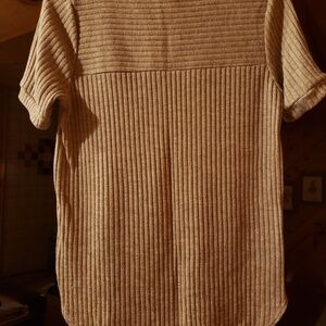 Pitaya Lazy Sundays Short Sleeve Sweater Top Brown Tan Small