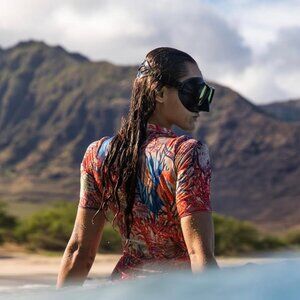 A one-piece model with a stand-up collar and a zipper on the chest, which allows you to adjust the depth of the neckline. The back in this model is completely closed, the sleeves are short. This very comfortable model is often chosen for outdoor activities and water sports.