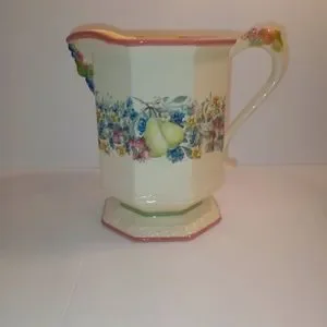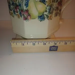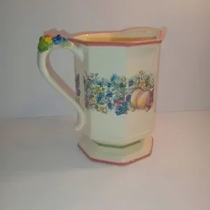 Sweet Country Harvest Pitcher. This beautiful item features floral detail with an abundance of harvest fruits. Holds up to 42oz. New never used.