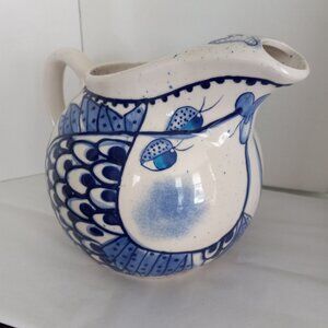 Blue and white ceramic pitcher by diane. 2001