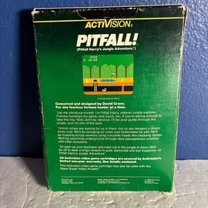 Step into the jungle with this classic 1982 title from Activision: Pitfall! Designed by David Crane, this game features “Pitfall Harry” on a thrilling adventure through swamps, crocodiles, tar pits, and more in search of riches. This listing includes: