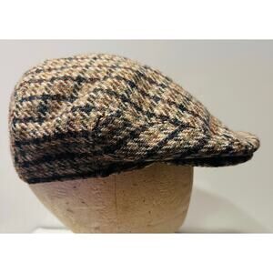 Pitlochry Tweed Herringbone Plaid Wool Baker Boy Hat Sz medium Vtg Golf outdoors outerwear