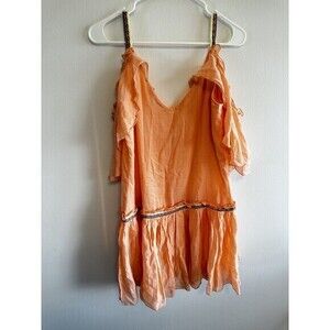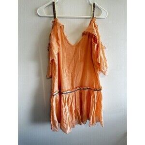 Pittas Standard Women's Cold Shoulder Flutter Sleeve V-Neck Lined Dress Orange. Condition is Pre-owned. Shipped with USPS Ground Advantage.