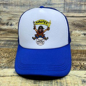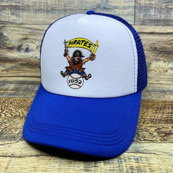 Pittsburg Pirates Mens Trucker Hat Blue Snapback 1952 Vintage Logo Baseball Cap