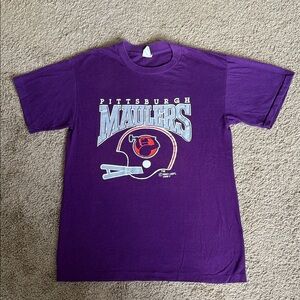 Pittsburgh Maulers USFL United States Football League 1983 Purple Logo Single Stitch Tee
