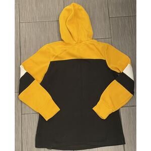 Show your love for the Pittsburgh Penguins with this Fanatics hooded long sleeve sweatshirt. This black and gold sweatshirt features the team's logo and is made of high-quality materials. It's perfect for staying warm during the regular season games or just lounging around the house. Pit to pit is 20 inches. Top of shoulder to bottom is 27 inches.