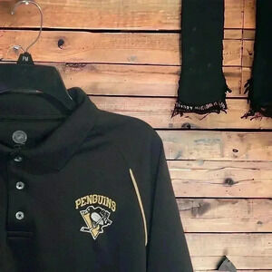 - Pittsburgh Penguins NHL Men's Size Large Black Polo with Embroidered Logo