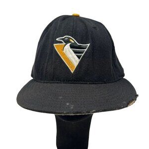 Pittsburgh Penguins Vintage New Era 5950 Wool 7 3/8 Fitted Hat Cap Distressed