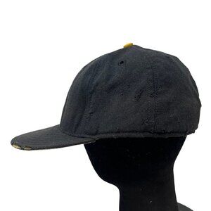 Vintage distressed condition. Has a lot of wear including marks/small holes to fabric in various areas. There is fabric loss/hole on the bill. Please note this is a very worn hat and not mint condition. Please see photos.