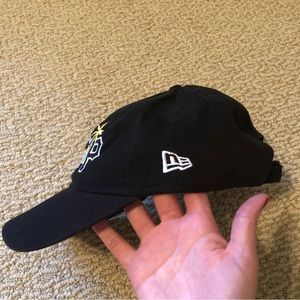 This New Era brand hat is in new condition with the original stickers still on. I just have too much Pirates gear and need to pass some along. Adjustable strap in the back.