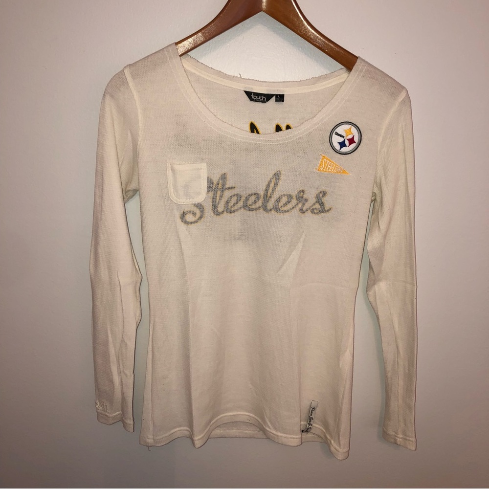 Cream colored (see through) Pittsburgh Steeler thermal shirt