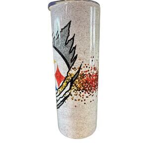 Pittsburgh Steelers Glitter Effect Handmade Tall Slim Insulated Tumbler. Excellent, like new condition. Approx. 8.25 inches tall and 3 inches wide.