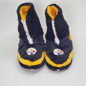 Pittsburgh Steelers High Ankle Front Zip Slippers Size Large Black Gold Foco
