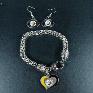 Pittsburgh Steelers NFL Charm Bracelet and Earrings Football Fan Jewelry Set