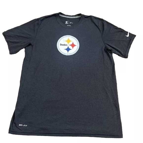 Get ready to support your favorite football team with this officially licensed Pittsburgh Steelers shirt by Nike. Made with Nike's Dri-Fit technology, this shirt is designed to keep you cool and comfortable during the game. The shirt is black in color and in size large, perfect for male Steelers fans.