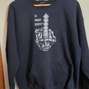 Features: Black, Distressed Graphic Print, 'U MAD BRO?', Front Pocket, Pullover Style