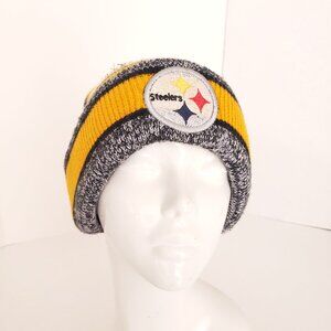 Pittsburgh Steelers Yellow Multicolor Striped Knit Winter Bobble Beanie