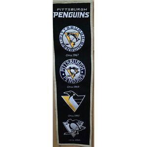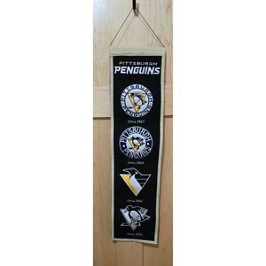 Pittsburgh Penguins Evolution Logo Wall Banner vintage NHL Hockey man cave
